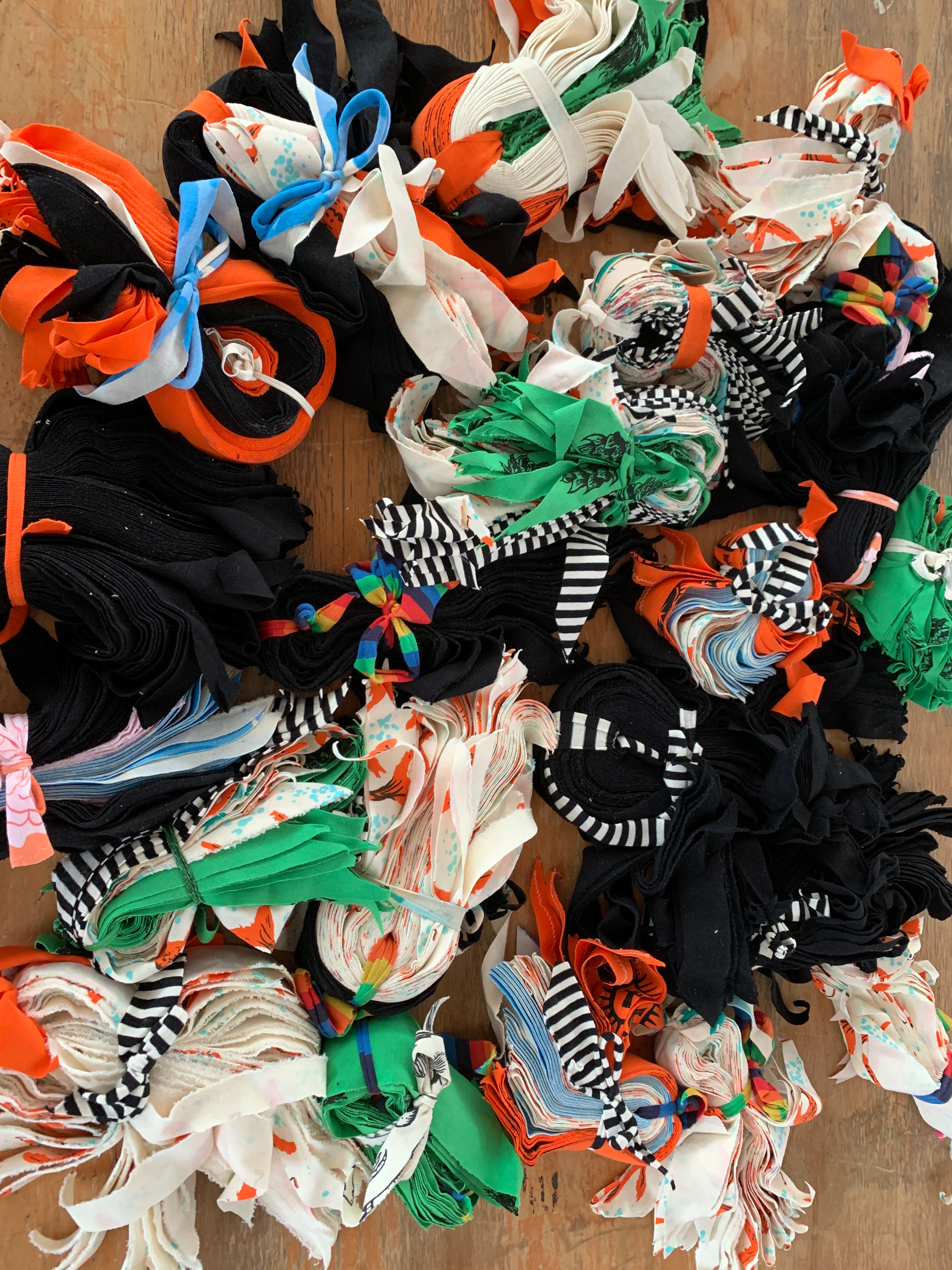 We get a lot of ties of our lovely fabric tied around the bundles of Thunderpants. Our fabric is 90% cotton so it makes great garden ties that break down over time.